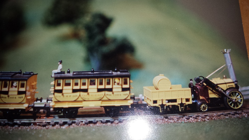 This one here is the iconic Stephenson's Rocket of 1827, built by Triang. I am told that while it runs on OO, and HO, track, it is actually scaled to Sn3!