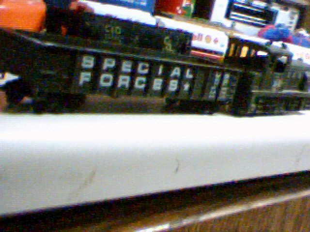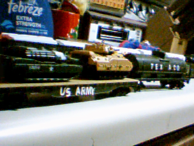 w00t! found my US ARMY train! I apologize for the crap behind train & quality Gondola says Special Forces on it Its Tyco dunno which set its from those are Matchbox tanks on the flat car Edited by - microbusss on March 20 2009 2:36:31 PM