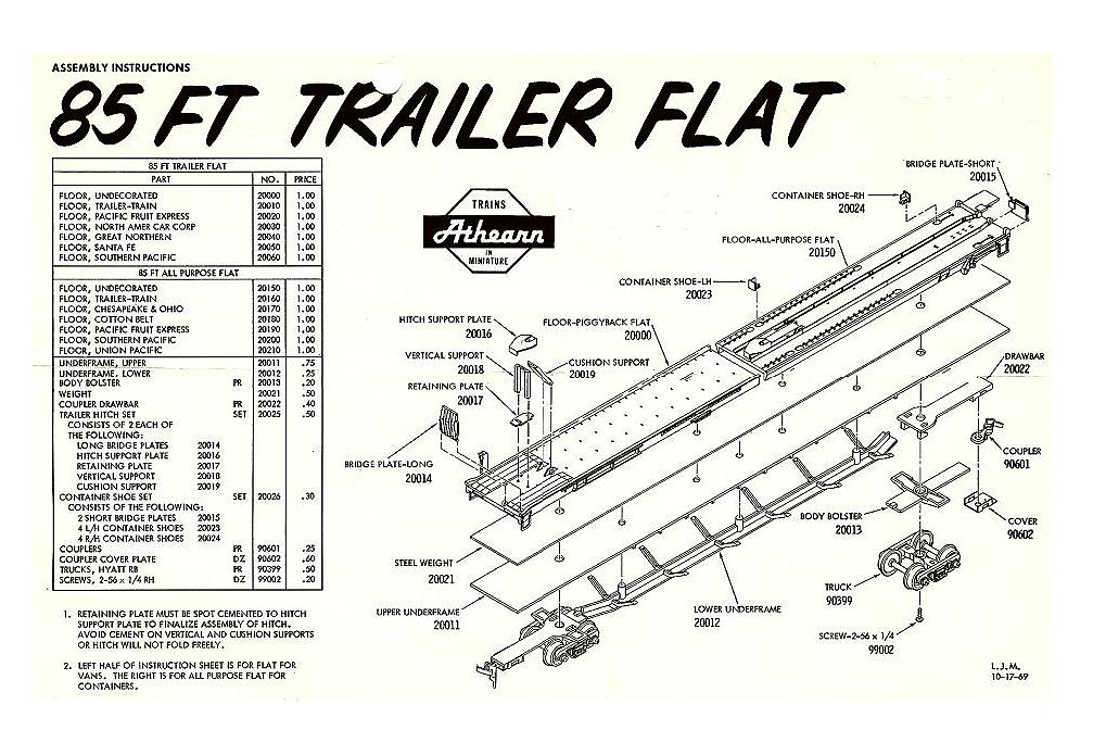 hi carl agree,but not available here in uk,been trying for a year to get the full kit,or the parts bags,its a nice piece of history and just want to complete it and return it to its display case,ken spot on with athearns prices,its their international postage that kills it for me 20025 85' FLAT TRAILER HITCH SET 1 $2.25 20026 85' FLAT CONTAINER SHOE SET 1 $2.25 other thing that puzzles me is how something given out at that meeting in new jersey ended up in kent in the uk