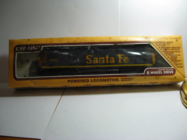 NEW IN BOX LIFE LIKE SANTA FE ALCO LOCOMOTIVE. # 8332. TESTED AND RUNS EXCELLENT - ALL WHEELS SHINEY AND CLEAN - APPEARS TO HAVE NEVER BEEN USED - BOX IS DIRTY ON OUTSIDE AND A LITTLE ROUGH. ALL PAPER WORK INSIDE BOX STILL