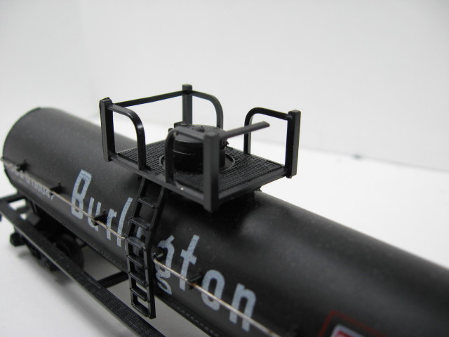 I think this is a Roco as it says Made In Austria - Nice tank car - all steps ladders and couplers wheels on car - Has all top railings but one small section is broken off - can be easily fixed by you. See picture below of broken pc
