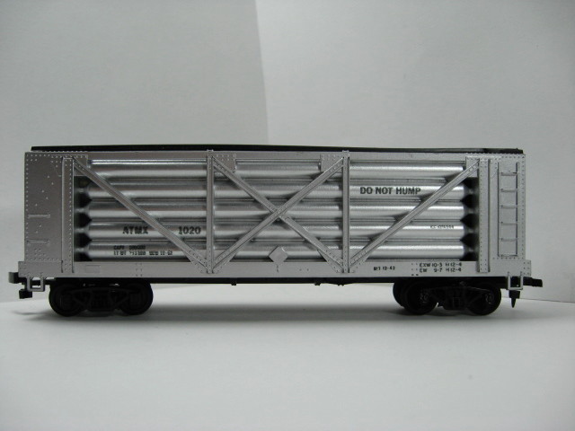 MINT LOOSE HELIUM CAR - HIGHLY DESIRED - CHEAPER THAN EBAY LISTINGS - CAR IS COMPLETE WITH ALL STEPS WHEELS AND COUPLERS - HAS BLACK ROOFWALK AND BRAKE WHEEL. BRIGHT SILVER IN COLOR - REPORTING MARKS OF ATMX 1020 WITH DO NOT HUMP ON TANKS IN BLACK LETTERING AND DATA INFO.
