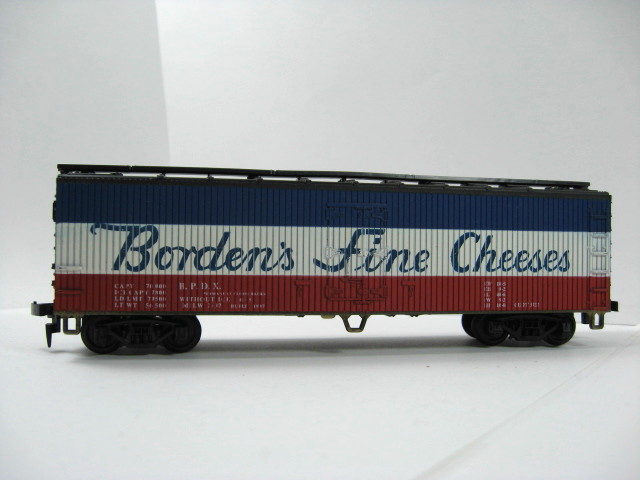 ROCO BORDENS FINE CHEESES BOX CAR - LIKE NEW CONDITION - ALL STEPS INTACT - WHEELS COUPLERS - NO BRAKE WHEEL -GREAT FOR 50'S -60'S RAILROADING.