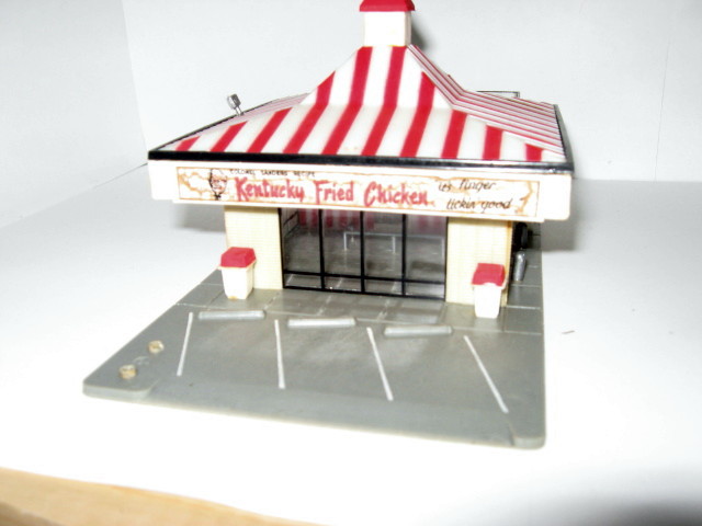 LOOK AT ALL PICTURES BELOW OF ASSEMBLED KFC BY LIFE-LIKE - DOES NOT HAVE SIGN AND MISSING SOME SMALL DETAIL PARTS - STICKERS ARE FADED AND DIRTY FROM AGE - COULD TURN THIS INTO A CUSTOM RESTUARANT ON YOUR LAYOUT U.S $.4.00 / CANADA $5.00 SOLD SOLD SOLD 5-23-10