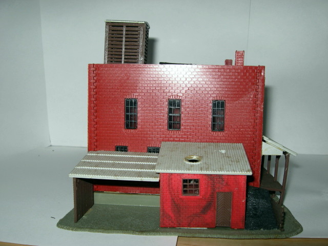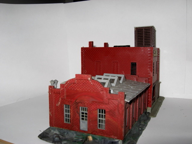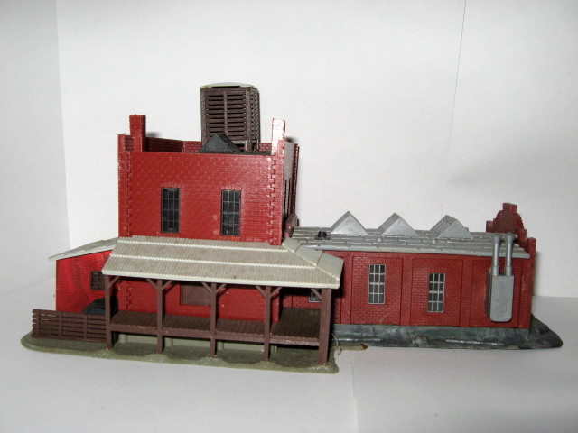TYCO /AHM GRUSOM CASKET COMPANY ASSEMBLED STRUCTURE - OVER ALL NICE BLDG - GRUSOM SIGN IS FADED AND PARTIALLY UN-READ ABLE - APPEARS TO BE MISING SMOKE STACK ON SMALL BACK BLDG - EASY FIX - LARGE STRUCTURE FOR YOUR LAYOUT -