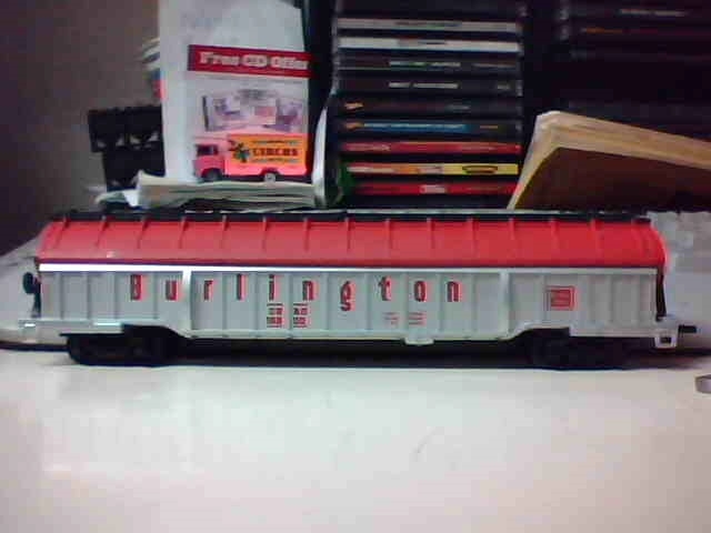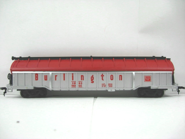 AHM BURLINGTON COVERED GONDOLA CAR - RED TOP SILVER CAR - NICE CONDITION - ALL STEPS ARE ON CAR.
