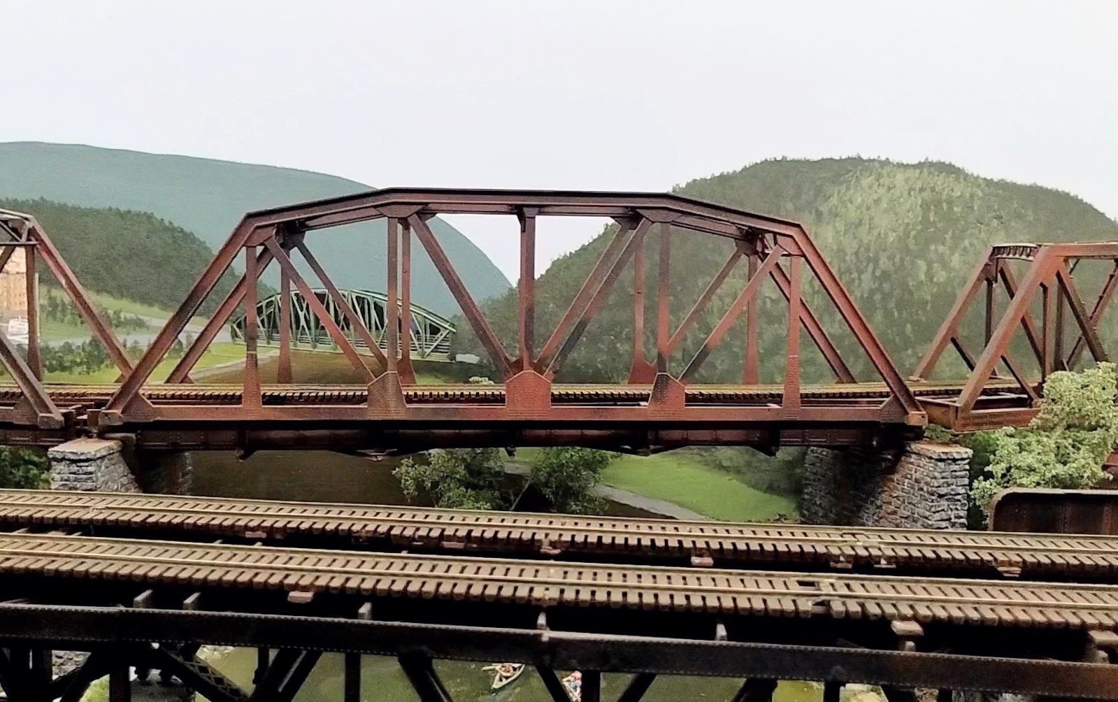 yes I agree that bridge pic reminds me of the bridge on the Red Oaks Line from Model Trains mag won't do that as a 4 lane but would put a gas station there