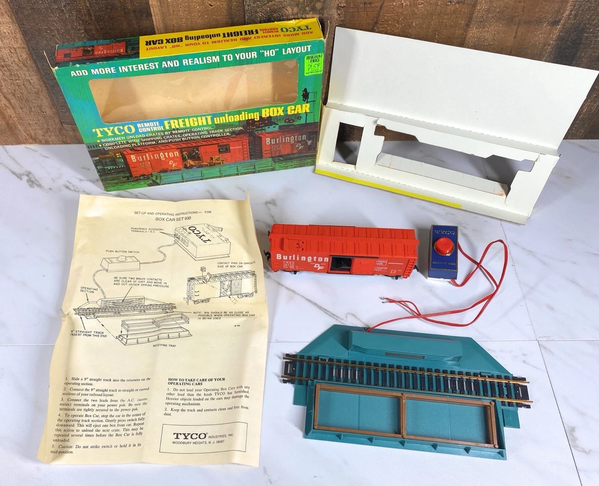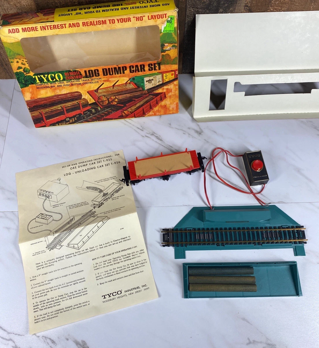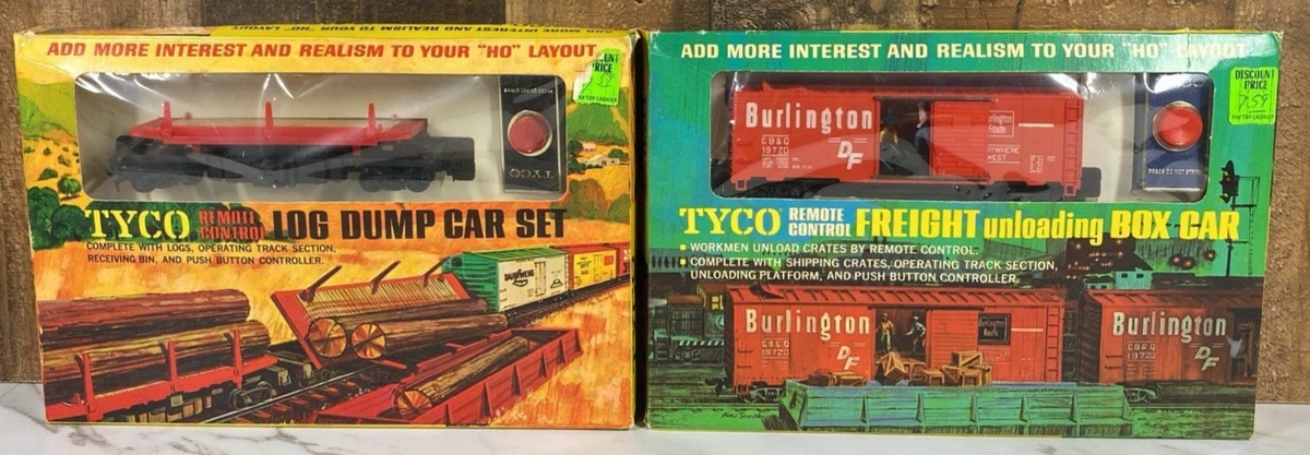 Lot 2 Tyco items Freight Unloading Box Car Set Log Dump Car Set Untested