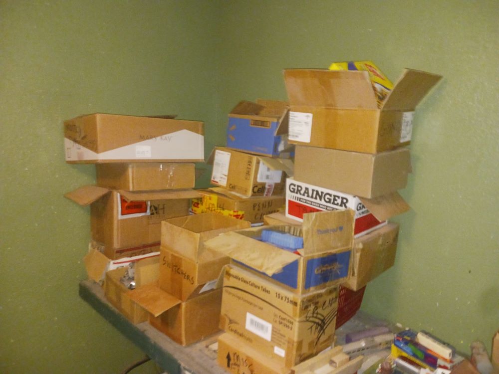 Two friends helped me to set up Armadilloville in a newly acquired spare bedroom while I was busy flailing my one working arm to transfer the layout and boxes and boxes of Tyco stuff from the freezing garage. These boxes represent what is left after I thinned the herd on eBay of hundreds of duplicates. The madness never stops!