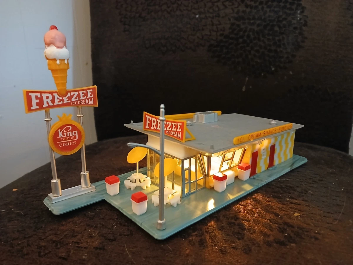 Life-Like HO scale 1:87 Freezee Drive-in Ice Cream Shop Roadside Stand Lights Up Nice