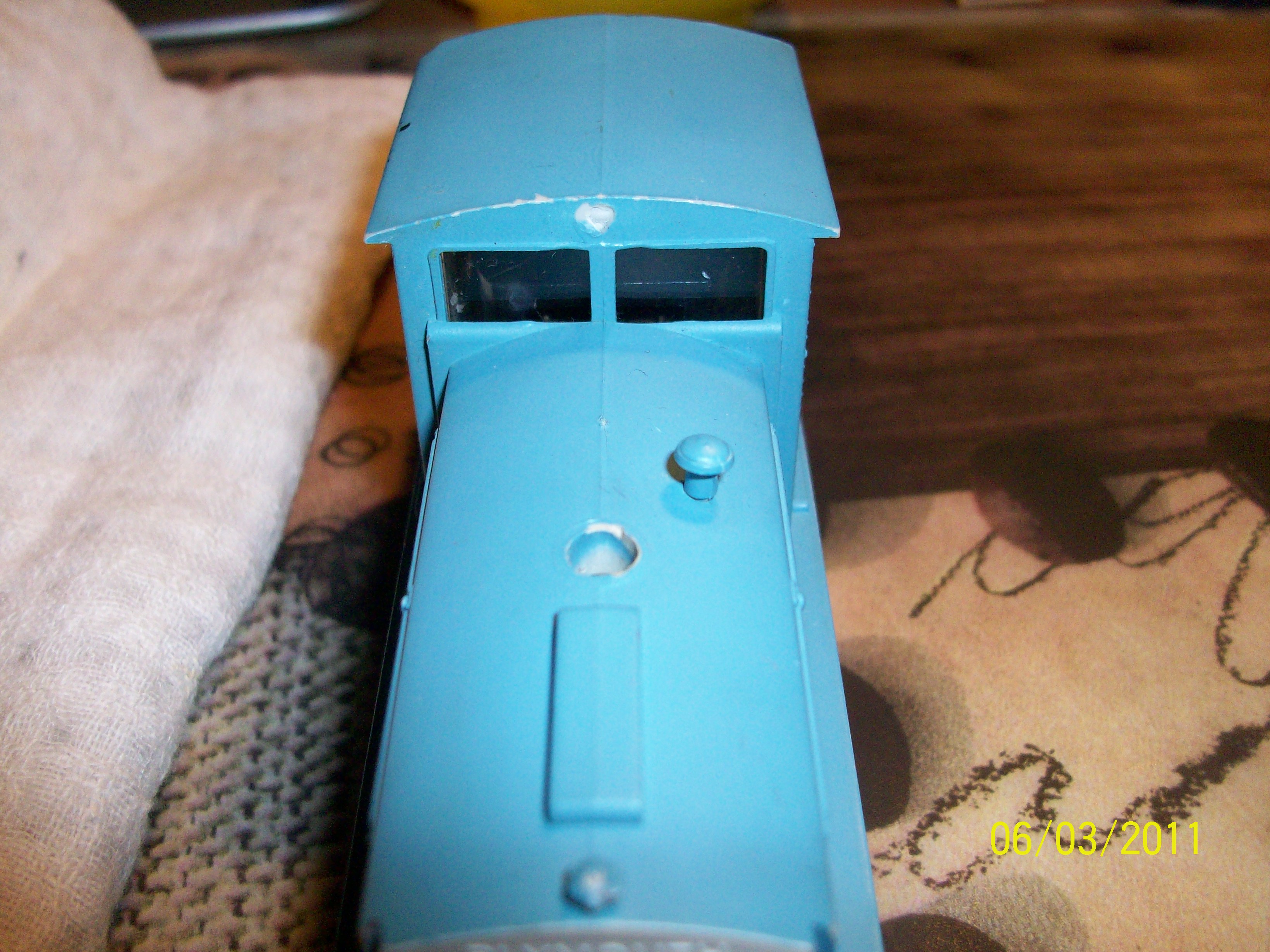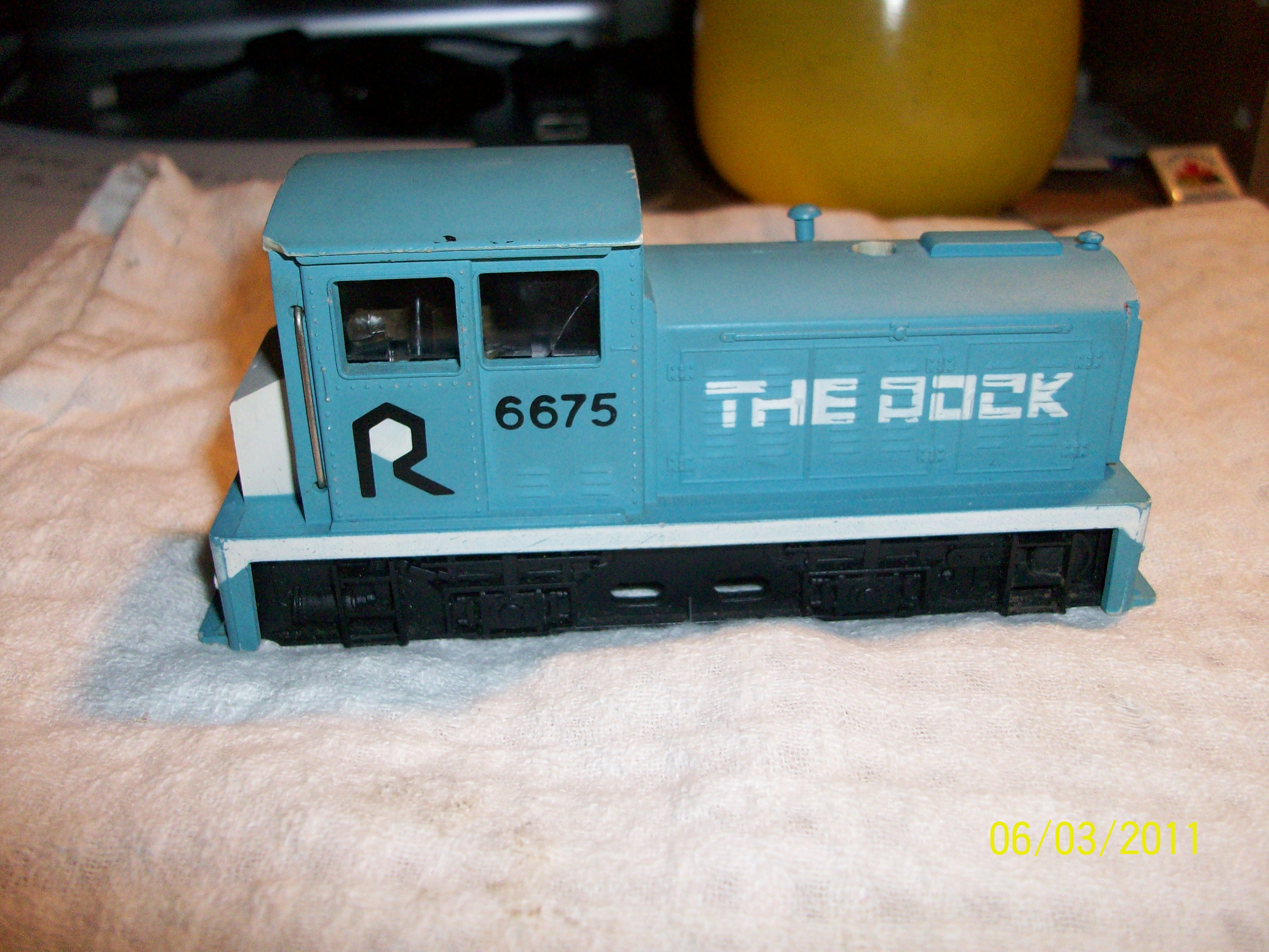 Hi Shay, Thanks for the reply.The hand rail behind the cab is a metal one the rest are molded. I have a Tyco switcher that have a headlight and I installed ditch light for and aft looks great. i think I'll do the same with this one. I think I'll put a headlight on it too. It would look more real!!!It also has the windows installed which I think makes it look better. Thanks for your help. Do you have a picture of yours you could send me. Thanks for your time. Ken