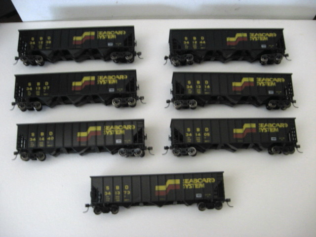 | Nice set. The Seaboard System scheme was too short-lived, especially considering its vast improvement upon the Family Lines stylings. Unfortunately the only SBD paint I still see are weathered surviving tan and black hoppers; I haven't seen a red/yellow/black car in decades.