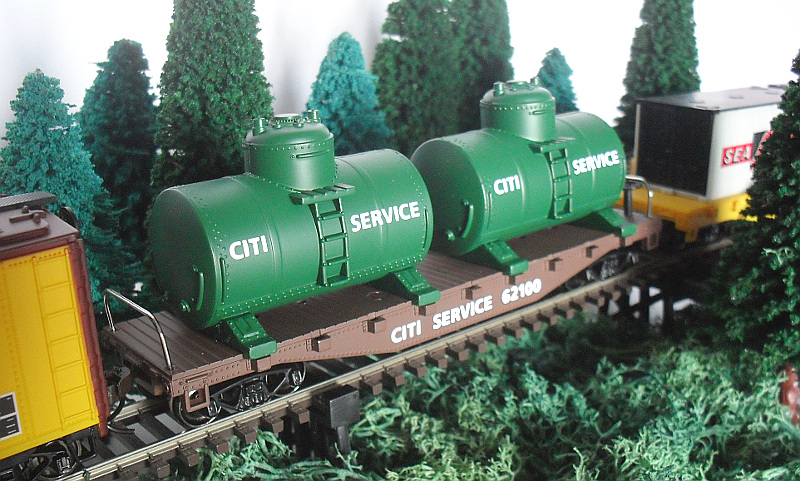 Not rare or customized but a bit unusual is my favourite car from my BN Christmas set, a Model Power Citi Service twin tank car featuring removable tanks. That is, I hope they're removable else I broke them off fitting the trucks with metal wheels!