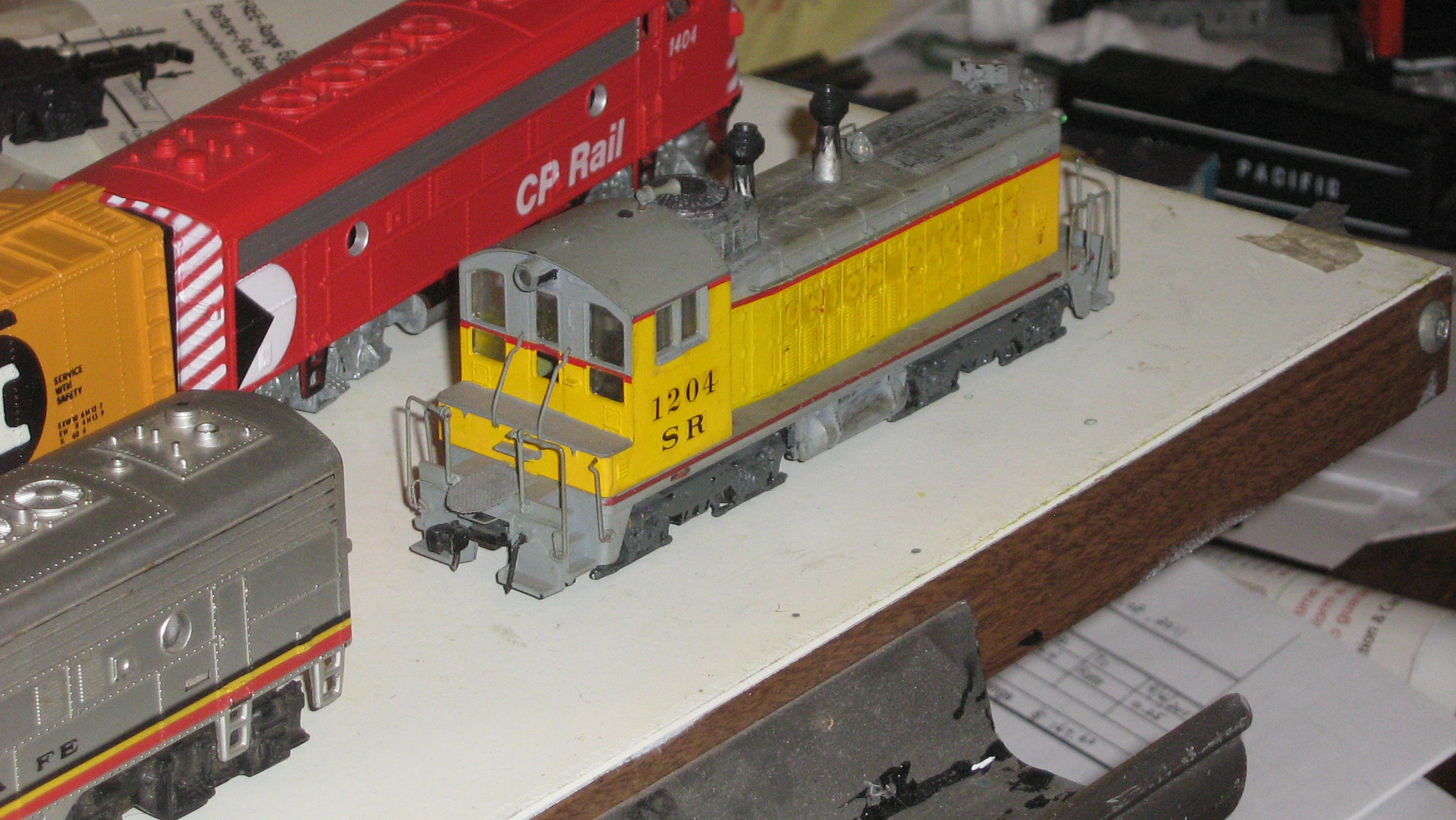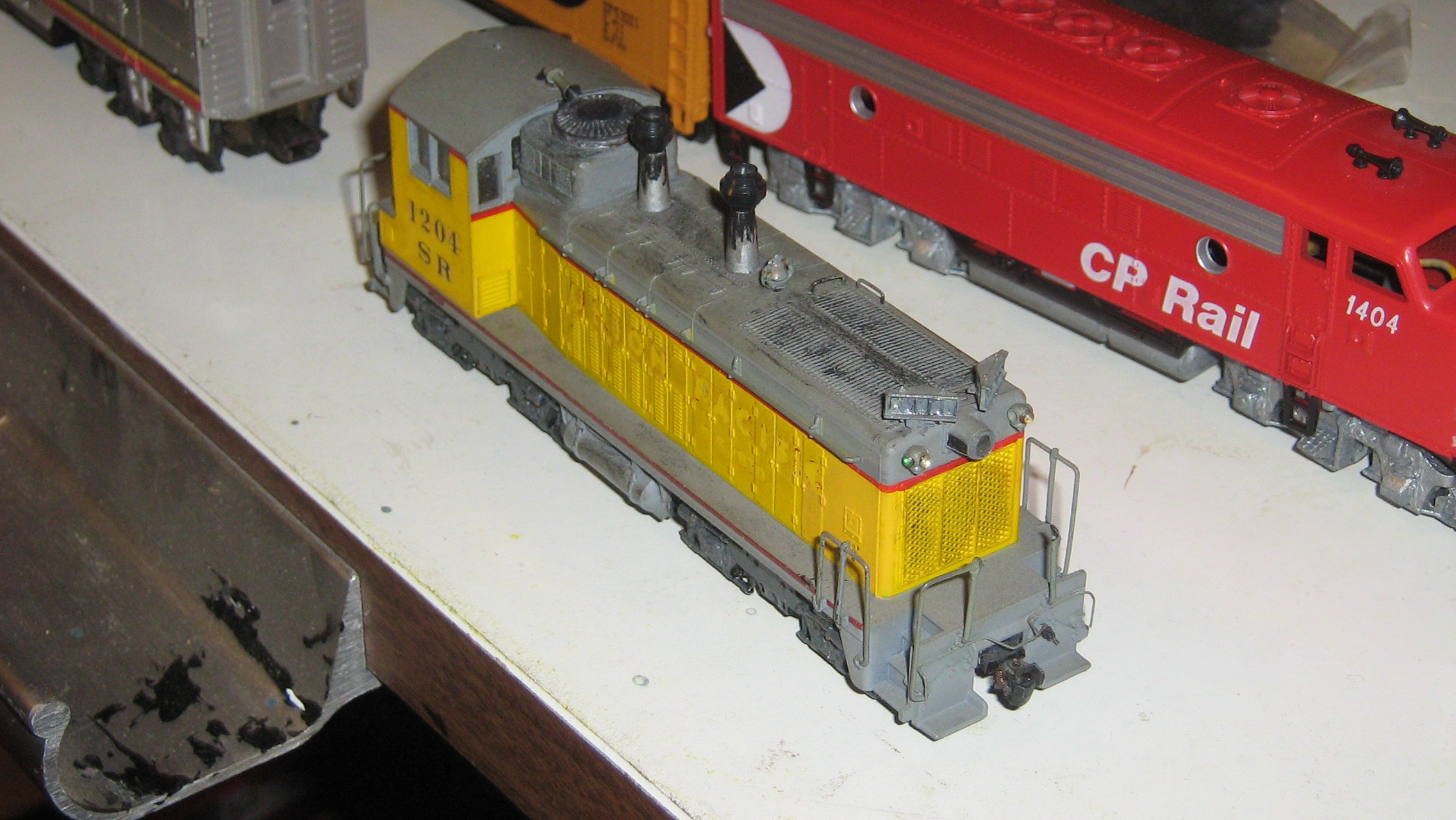 Since I don't own a Super 630, I'll have to do something else. Anyway, here's a $2 engine I got at a Winchester, VA train show a year ago. Missing the front axles and cover, need to find some AHM / Mehano replacement parts. But I like it, nice FP45 that needs some time in the shop for some repairs.