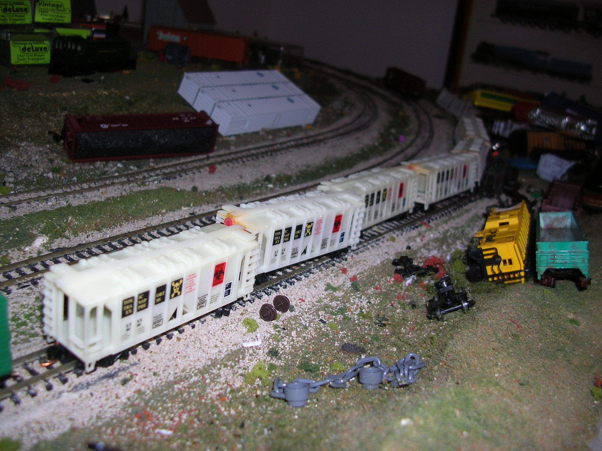 Once I Left Them Out On The Layout And Went Down Stairs To Watch TV And Get Something To Eat. The Sun Was Out So I Didnt Turn Out The Light So The Cars Glowed And then I Made A Mad Dash for The Toilet