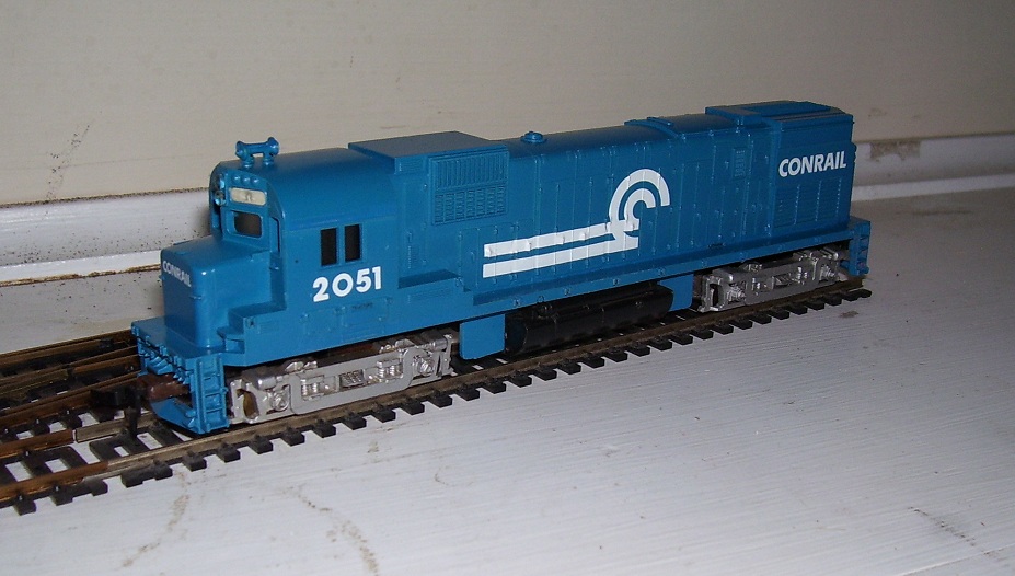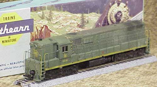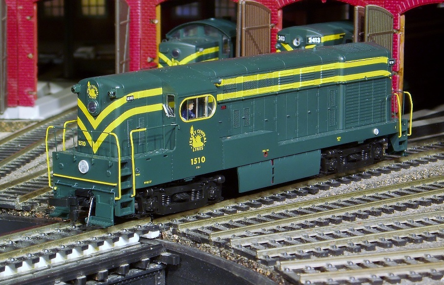 A CR repaint job and everything is done except the hand rails and numberboards. MU2 powered and it lights. It is lashed up right now on the layout with an early original PC Alco with the PC nose herald and another clone the Tyco inspired PRR Alco. They look pretty neat running together.