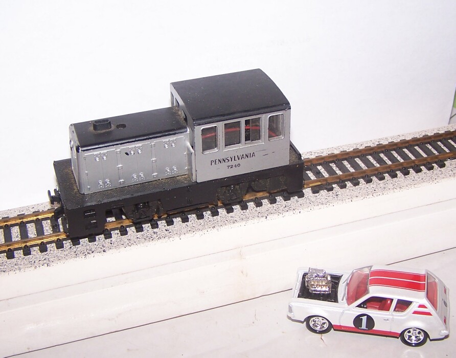 After all those "baby" Trainmasters and Big Boys etc, time to downsize a bit. Here's a Mehano Hustler in Pennsy scheme. Don't know if I've tried it yet on the test track, may need a loop or two.