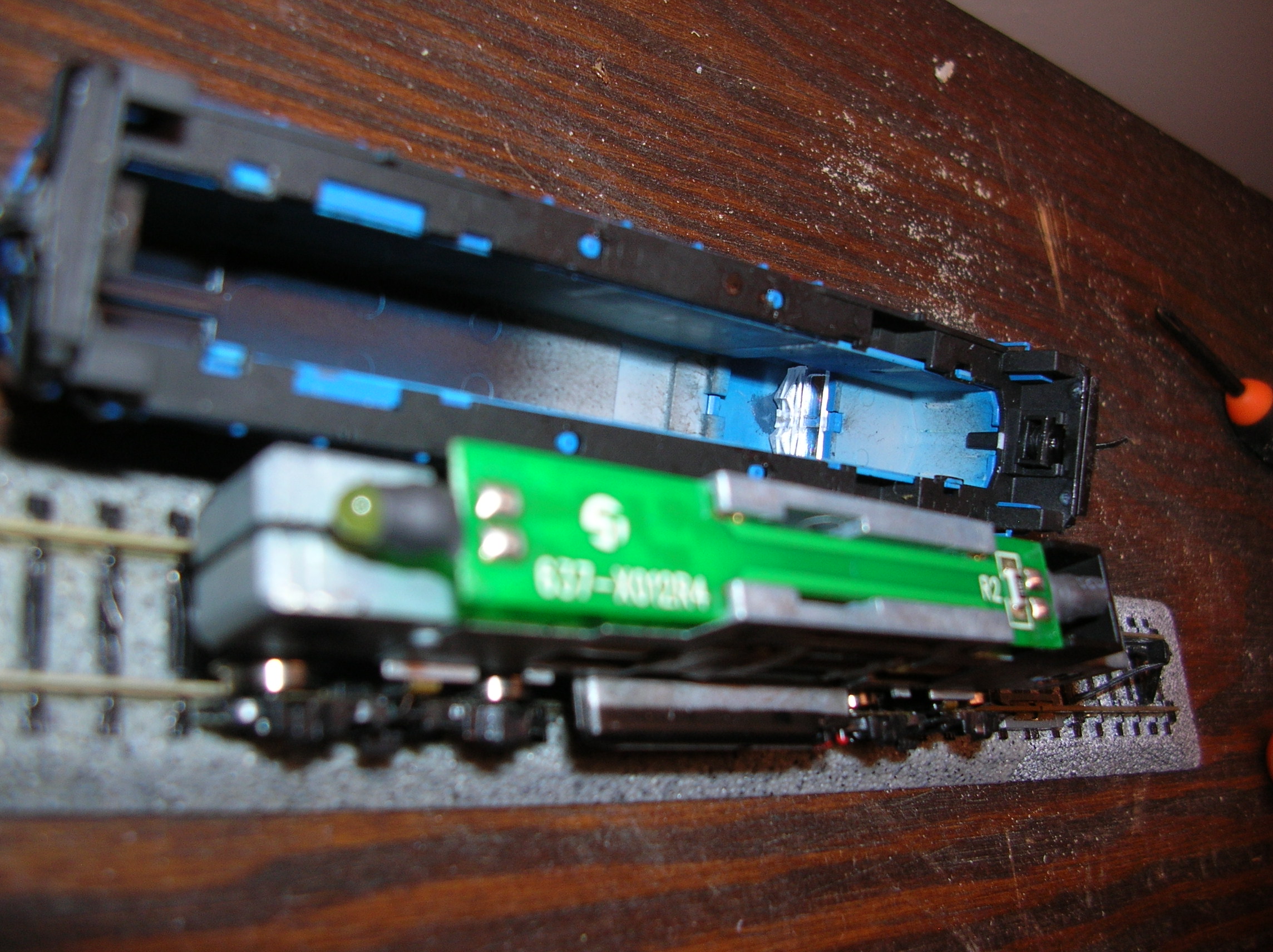 First Of all, The Engines Cost Is Very low, At A Remarkable $69.95, But I Got Mine At The Little Choo Choo Shop In Spencer, NC. For $59.95. The Store Is Very Much Worth The Visit. It Uses A Very Similar Mechanisim To Their Very Good GP7/9. On The Top, Chassis Has A Clip Fit PC Board Which Can Be Replaced By A DCC Digitrax Decoder. (heres A Tip. DCC Has Risen, And It Will FAIL INCREDIBLY! Stick With DC. You`d Be Better Off On The Long Run.) The Motor Is A Dual Flywheel 5 Pole Motor, Which Handles Very Low Speeds Well.