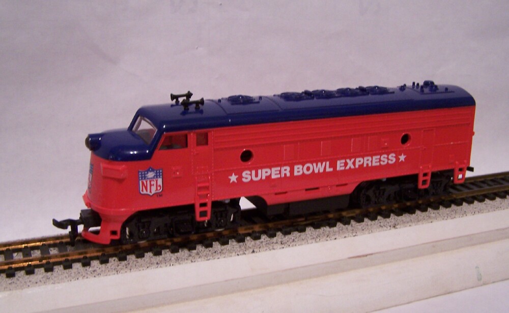 My LOTW is an NFL Superbowl Express , Mantua Made in China, circa 1993 printed on the bottom. Been watching for one of these, finally got one reasonable. Condition appears to be near mint, haven't tried to run it yet. Somewhere in my collection of HO rolling stock is an ( I'll admit it ) a St. Louis Rams boxcar. Always been a Rams fan since childhood, never lived on the west coast or midwest. But just like'em for some strange reason.