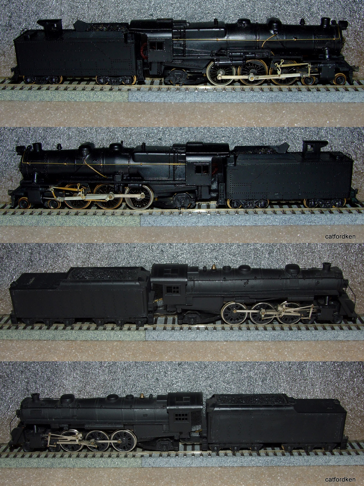 my loco(s) this week are 3 repaints awaiting decals for pgw and dullcote ken top Penn line Pacific,bottom mantua pacific