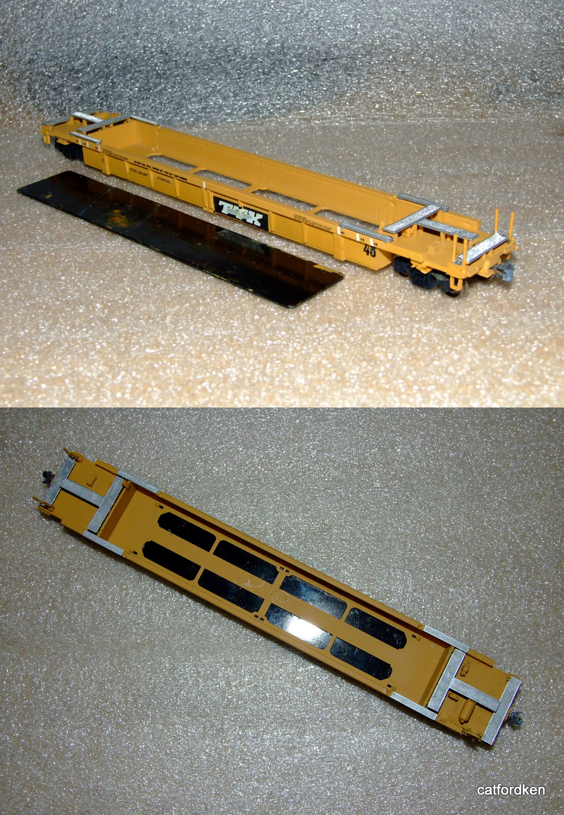 | Looks very much like a Walthers kit I got about 20 years ago. I remember being quite aggravated with that weight not sticking to the thin cross members and falling off, I hadn't yet discovered "Goo". I can check when I get home. Seems I have noticed "Denmark" on other Walthers kits in the past. I was also impressed when a later Walthers kit of a different well car design appeared to be cast metal for weight.