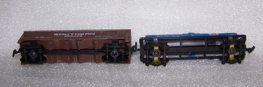 My COTW is a downsized scale, I took a Maisto On Track Tanker I just bought at a flea this past weekend, and tried on some TT gauge trucks I'd bought off of Ebay many months ago. Hadn't felt like digging out my stored ones, so when I ran across some loose ones, I got a few. Anyway, the trucks appear a tad wide, and high, but I can cut the mounting points down some, and live with the wide stance. Overall, I think converting On Track rolling stock is feasible. At $10 per truck pair, from China, a bit more than Tyco, but I do want to get some American TT rolling stock, and Maisto stuff is about all there is.