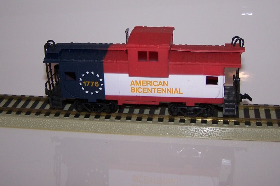 Newly purchased at a Greenberg show the 17th, here's the matching Bachmann NW Bicentennial caboose to go with my NW Bicent engines I have. So at least I now have them both. :)