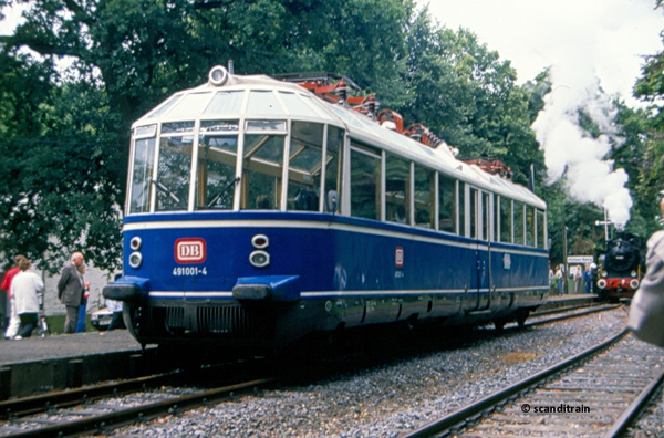 this train was in use until 1995 for sightseeing tours on the most scenic routes around Munich in southern Germany. On Dec, 12th 1995 it had a frontal crash in Garmisch Partenkirchen (south of Munich) with Austrian electric 1044 235, which was en route with a passenger train. 1 was killed, 46 injured.
