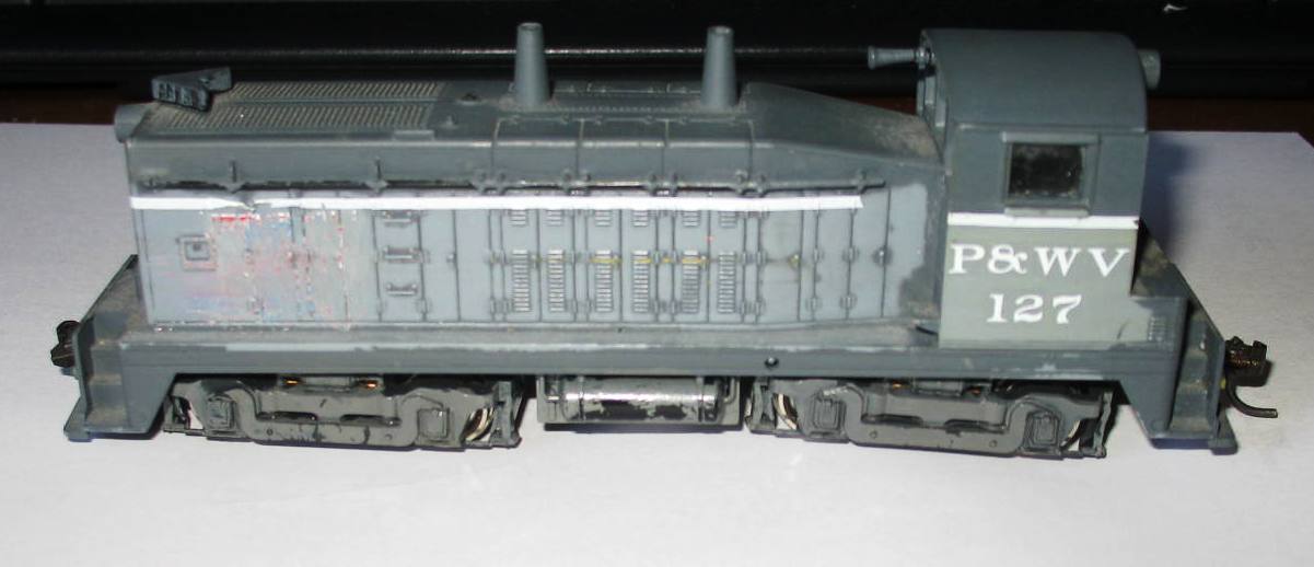As I was working on my SW7 Calf paint job, I remembered I had picked up an old Con-Cor SW7 cow diesel several years ago. I found it and was wondering if it is worth the bother to work on. The paint job is a half+half, as you can see from the images; the trucks have one wheel that appears to have a tire on the rim ( one only on opposing sides of each truck) and it did run this morning when I had it on the test track, although I am sure it is in need of cleaning, etc.