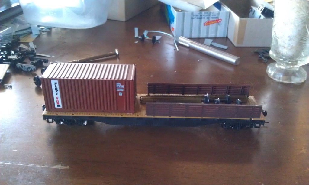 guess I'll start this one. Got this car for a quarter at a swap meet, was missing trucks and the caboose when I got it. course now that I think of it I don't think I have a single car that was built or bought as-is!