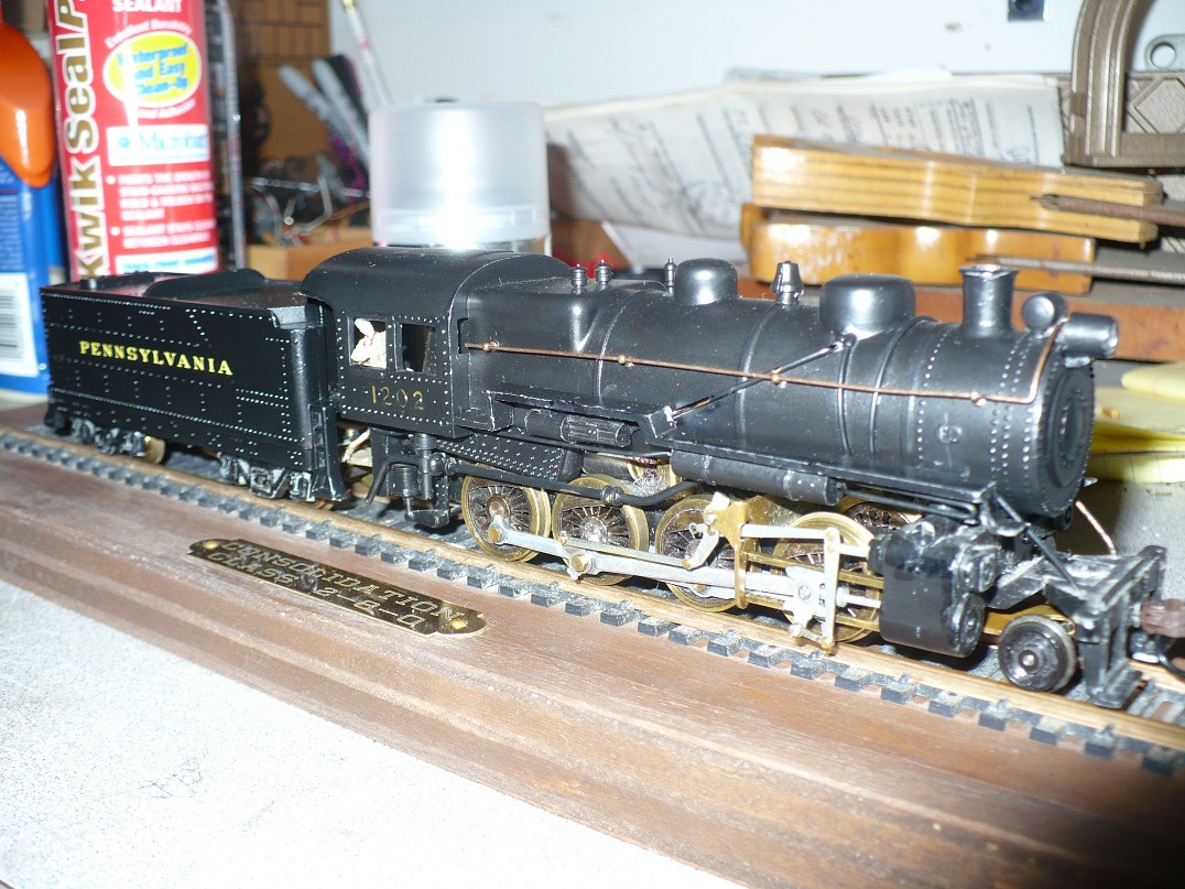 Here's another loco I've recently finished refurbishing--Penn Line Consolidation. I stripped, painted, and decalled the tender. The loco just needed some touch up, and I sprayed both with a matte clear to make the black paints look the same. It came with a wooden plinth with metal nameplate which is a nice touch. Crew was added also.