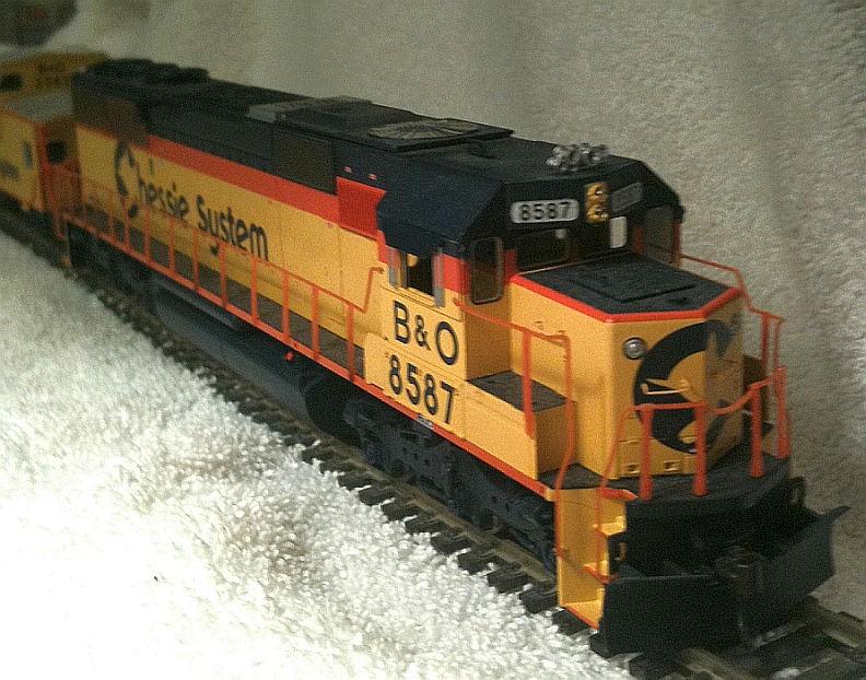 Looks like everything on the forum is getting off to a slow start this week so I guess I'll do the honors and post something. My post this week is an Athearn RTR, Chessie System SD-50 which is an absolutely beautiful locomotive (I can't belive nobody has posted one of these yet) which makes me just want to go run some coal trains if I had a layout...LOL..You'll have to excuse me once again for the quality of the photo because I had to take it from my iPhone because my digital camera finally died. Anyways, enjoy, and lets get some stuff going here guys and gal's!