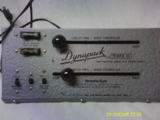 Found 2 of these mint in boxes from the collection we just bought. Dynapack transformers. Can run 2 trains at a time. Very heavy but when we redo the layout they might come in handy. Seems odd to have a slide control.