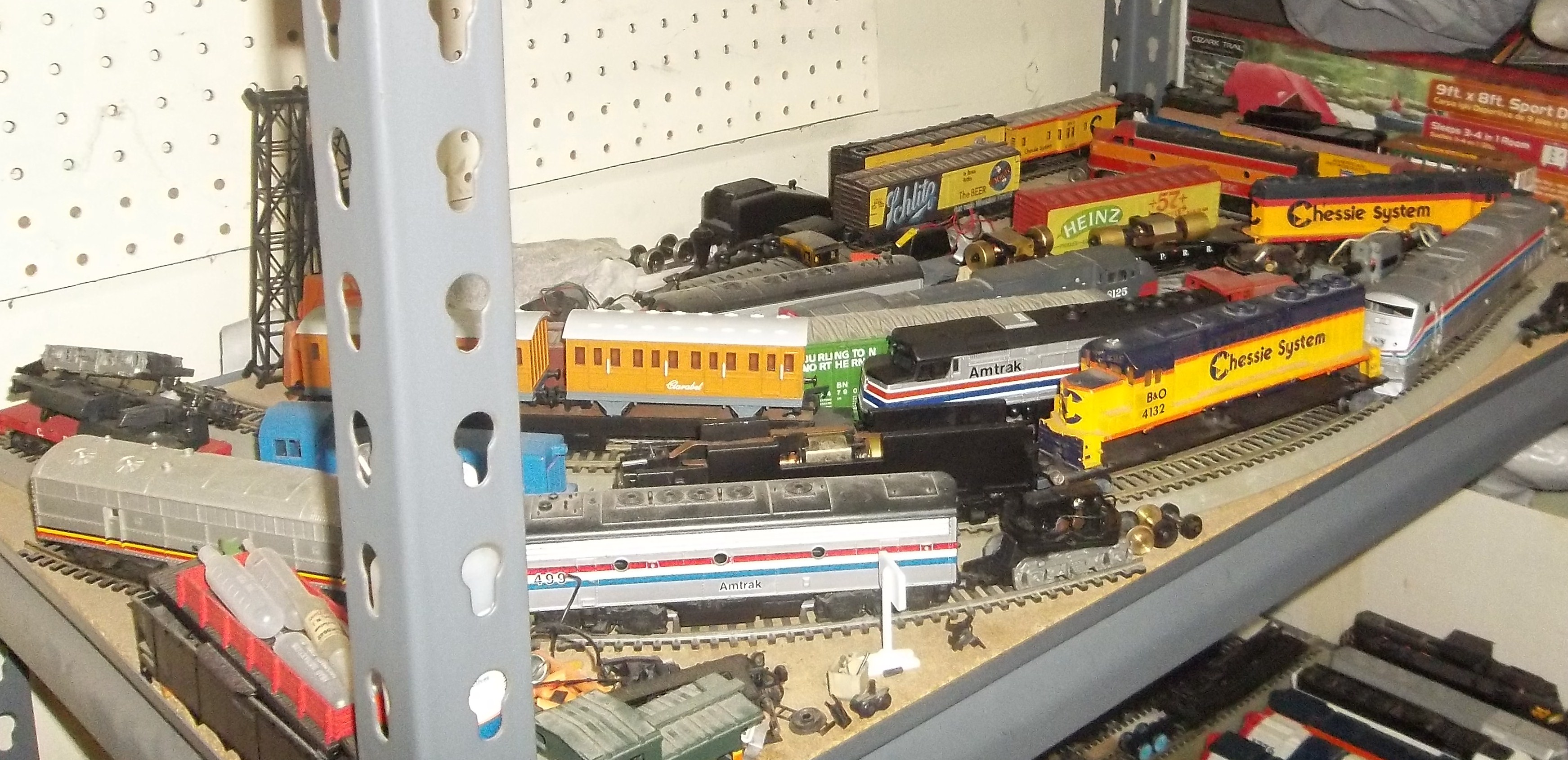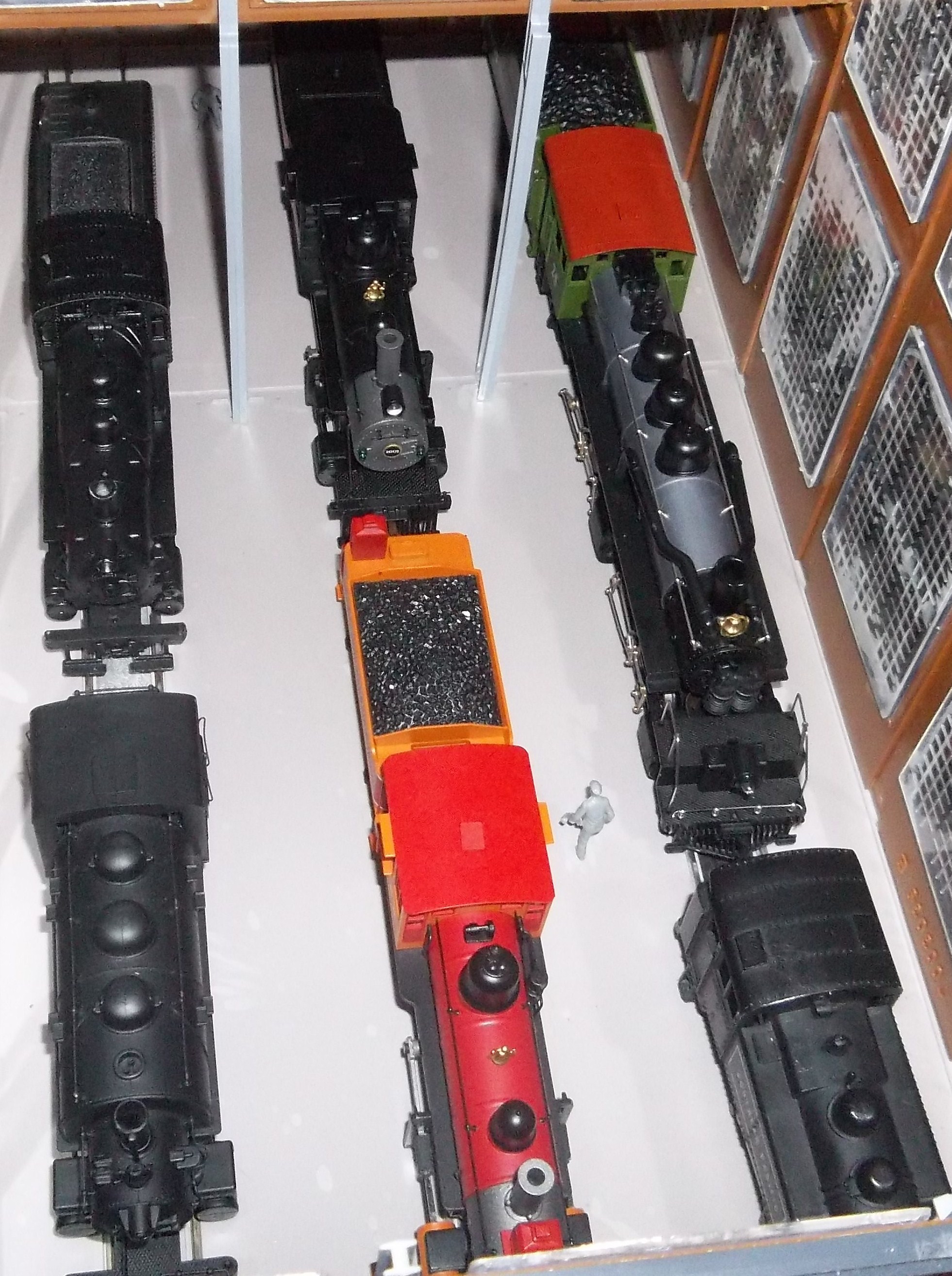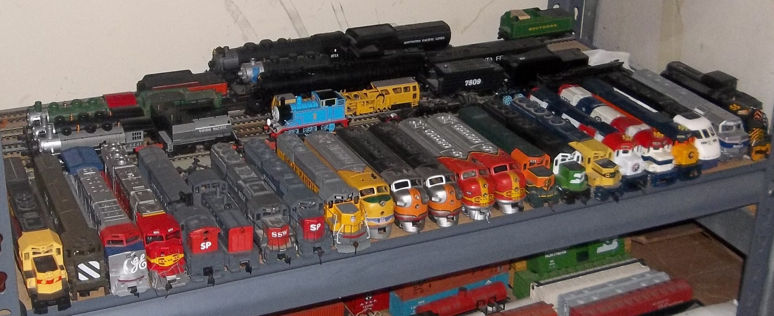 If my 4-8-2 was runnable I would show more pictures, but since it's not and wont be for at least a year I don't take to many pictures cause it sits in one spot all the time. My shelves are very strong, my dad and I built them back in 04. My favorite engines are stored on my layout. Well my steamers anyways