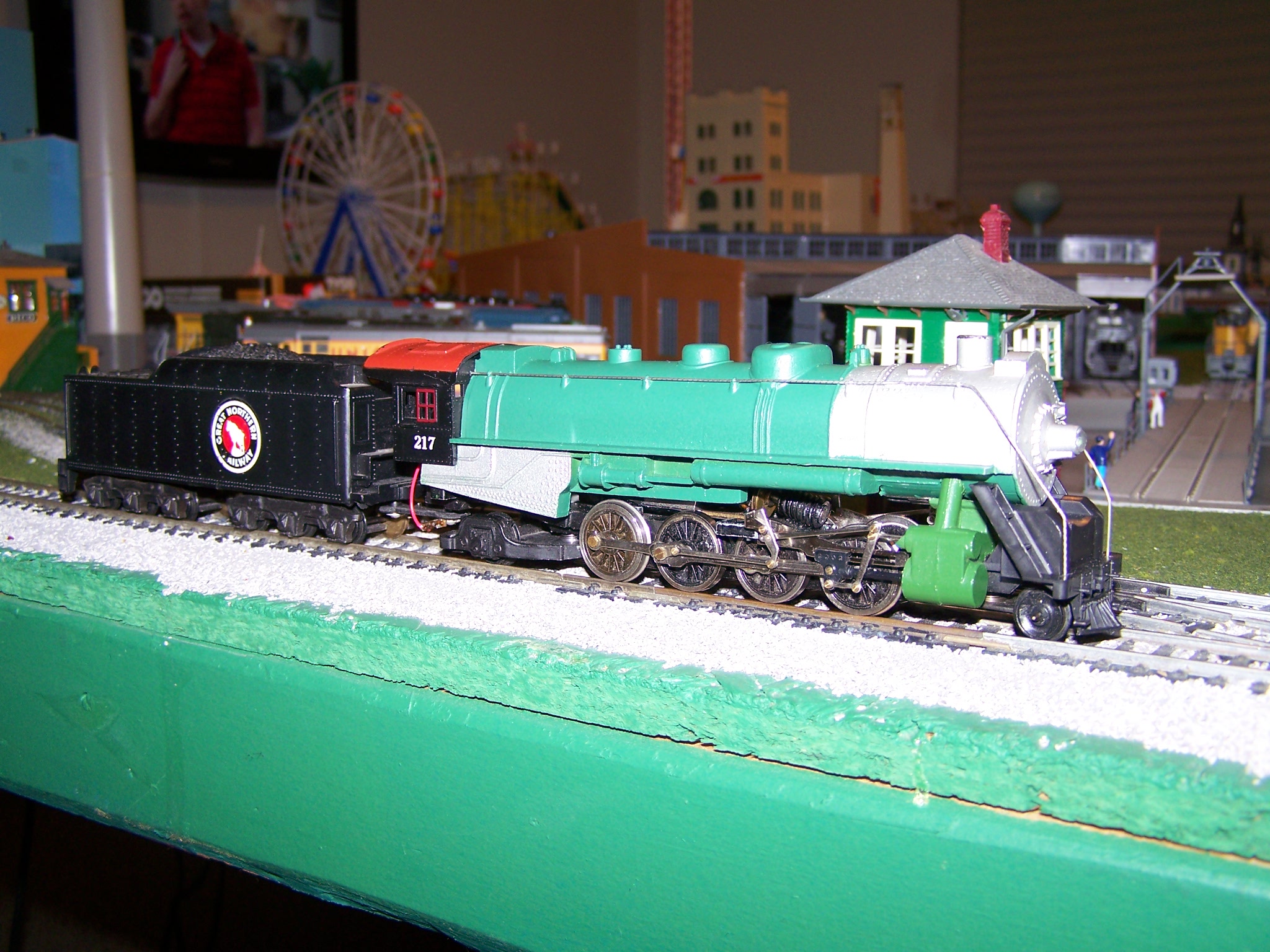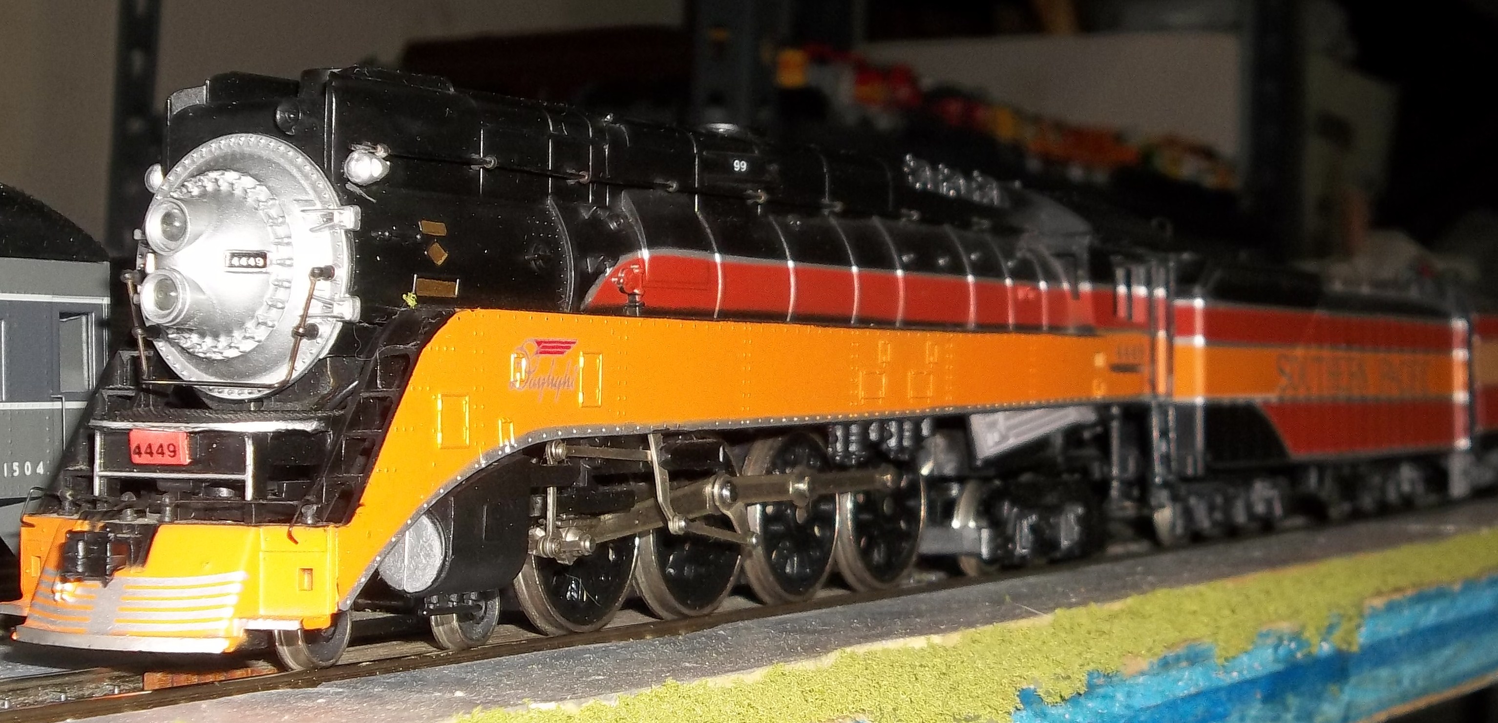 my newest train show find a bachmann 4-8-4 daylight for $75!! needed the usual work you'd expect, heavy wheel cleaning, lubrication, and dusting off. Now she runs fantastic even on my 4x8