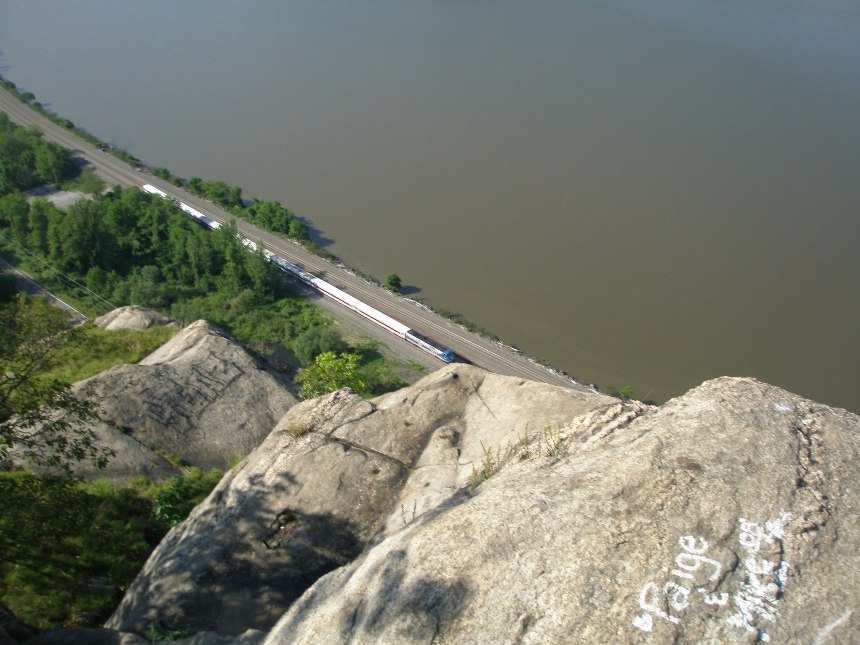 Hi Gareth ,Kenny. Nice photo. I wish these corporate railroads would do more of that and paint some other locomotives in the colors of the railroads they have made fallen flags. It seems they have forgotten there history. If they want to see just how much good publicity they could get from this. They should take these repainted locomotives and publish where, and when they would be running. Railfans would stake out favorite photo taking sites. Then lay in wait for the train. Metro North use to do this but didn't say what train ran where and when. When I went hiking north of Cold Springs, at Hudson Highland State Park, and drag myself up Breakneck Ridge you would when resting on a high point, sit and watch the trains below as they went by. I never knew a schedule so only got to watch them from a distance. It was still nice. I have seen the New York Central painted FL9 and the AEM 102s in New Haven Mc Ginnis colors blowing by at high speeds. There were others but I have forgotten them. * I can think of a nicer way to spend the day then to have eggs, or pancakes in the morning for breakfast at Cold Springs, then go to Breakneck Ridge and climb up to a high spot and watch the trains from above. After that go down and find a nice spot to photograph them from still up on the hill side but close to the tracks. After that go and wonder around through the Antiques stores at Cold Springs, not to buy anything, just to be noisy and see what they got and how high a price is on it. Then talk alot about it. Who knows maybe get something. Just to show you what you see there. A view from Breakneck Ridge. frank