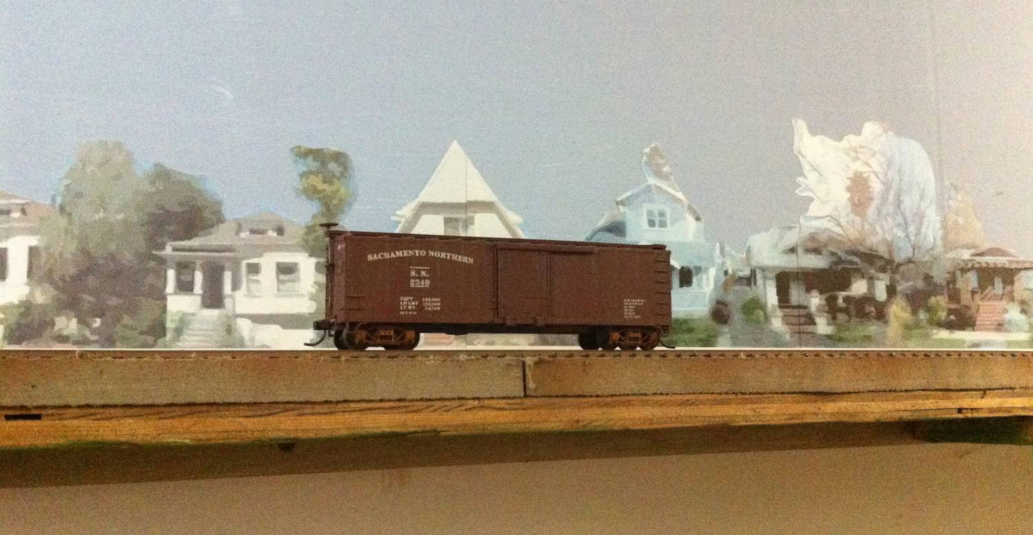 I haven't printed buildings yet, but I have used Google street view to get pictures for a backdrop. Here I printed pics of houses along Shafter Ave. in Oakland, CA. Prior to 1957, the Sacramento Northern had street trackage along Shafter and the neighbors had to deal with freight trains and steeple cab locomotives in their street. Today it looks just like any other residential street in the Bay Area.