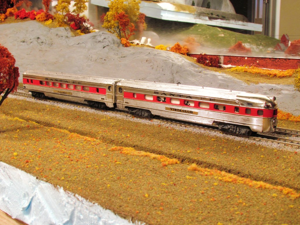 I've been digging through ebay the past few weeks scooping up a hoard of new (to me anyway ) Tyco streamliners. Here's a pair of chrome Santa Fe cars that just arrived