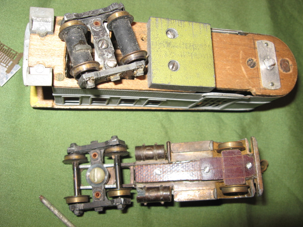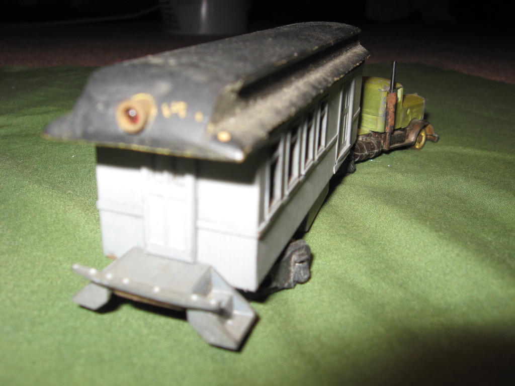 I am posting this one early because i know I will not have time tomorrow. I just bid on and got this interesting contraption. It appears to be an unfinished kitbash between a SIERRA diecast passenger car and a ULRICH Kenworth semi. It looks to have been made to run on the rails and is apparently powered. Although I have not yet received it, I am interested in seeing the creators thoughts and methods.