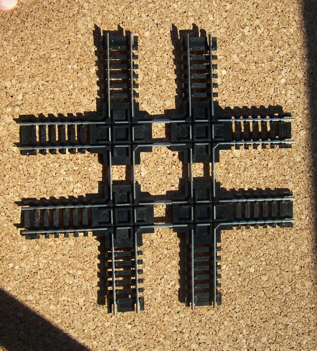 That's almost $50 worth of crossings I bought to make this piece, I. used a Dremel to cut off two adjacent sides on each 90 degree Xover, and there's 2.5 inches between centers. Turned out pretty nice, I did it in about 30 minutes time. Hope to get the railroad up and running this year sometime. Will probably have no scenery, but it will have 3 islands, and all flat terrain, thanks to this quad crossover I made. I'll bet no one else is likely to have used this in their layout scheme.