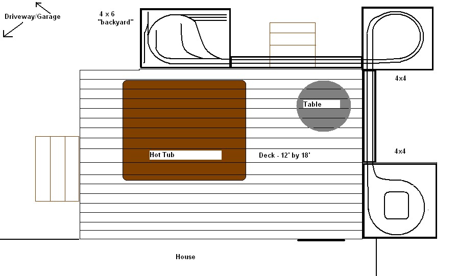 Here's my proposed outdoor HO modular layout, will be mounted on the outside of the deck railing, so to be viewable while sitting down at the table. So far the only two pieces I have are the two C-channels to mount the track on to run between the 3 main modular sections I will have to build. Once I get the support framework figured out, I can move on with this project.