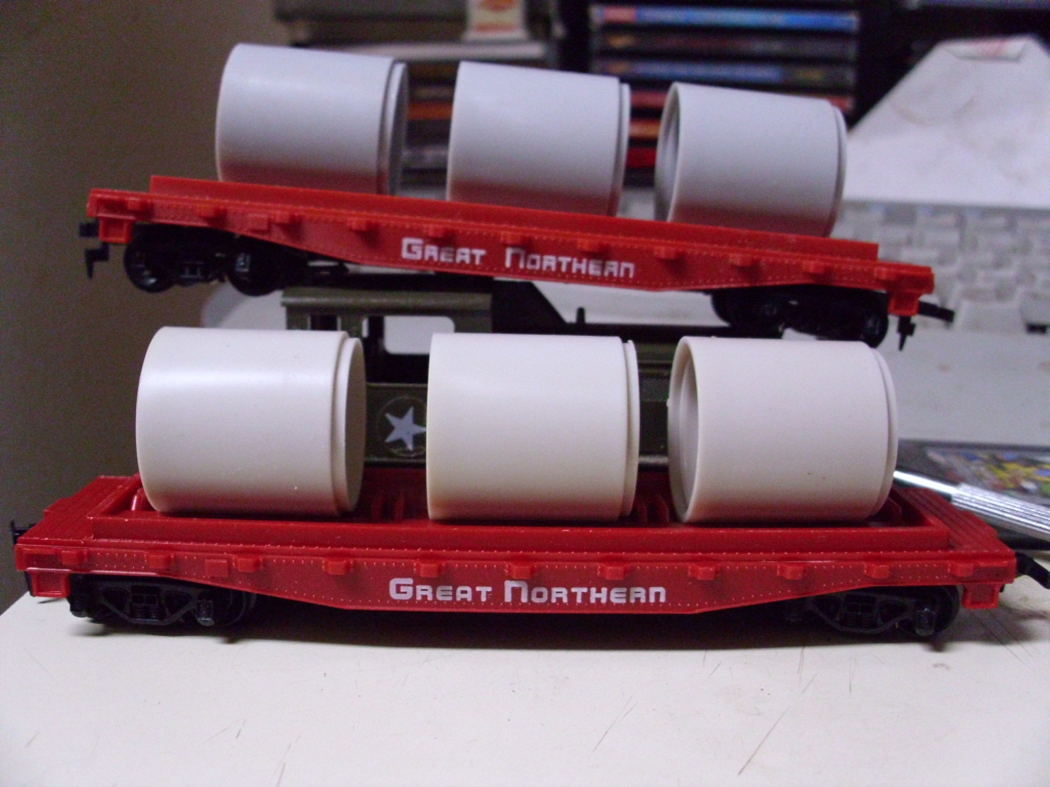 I LOVE those flat cars! Reason why? I am working on a way to make a "hood" to put on top of it to turn them into a Coil Fat Car, kind of like those Walthers make with one long hood instead of 2.......