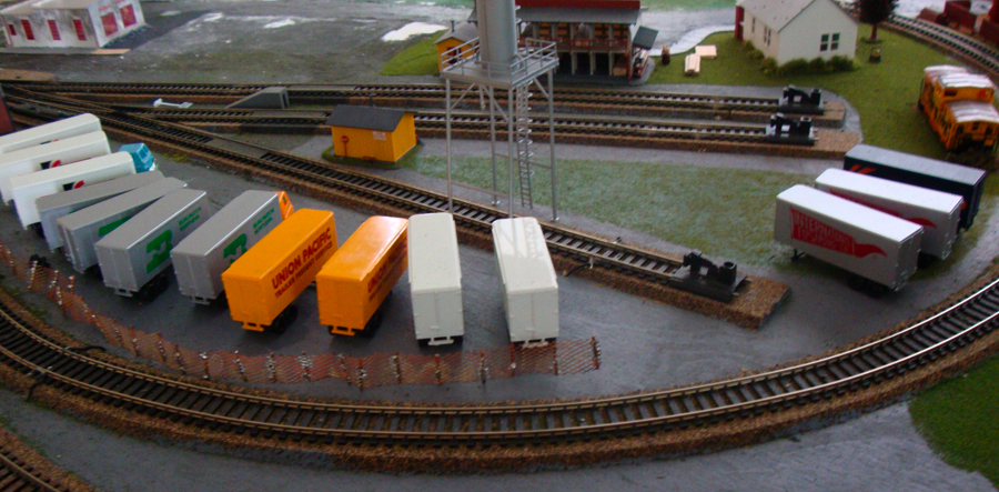 Here is the trailer depot and lumberyard, part of my new trailer fleet, the rest is loaded onto flatcars.