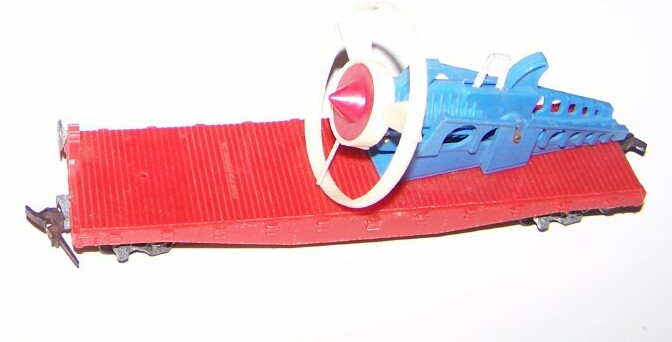 I wouldn't be Lioneling to you to say that I am happy to have found this HO Lionel car. A rotary launcher, I found it at my fav antique mall near Intercourse, PA, I think I paid $18 for it, usually sells much higher on Ebay. All the pieces look to be there. Not mint,but decent.