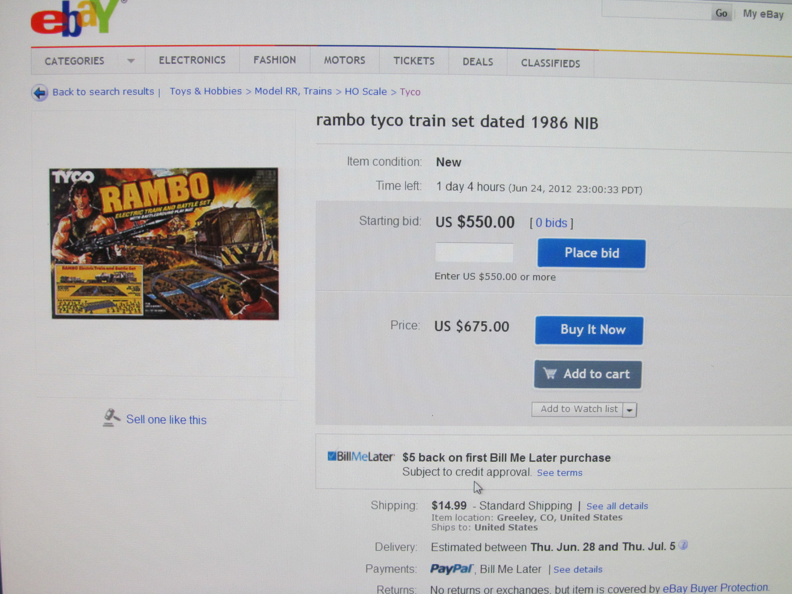 This NIB 1986 Rambo train set -