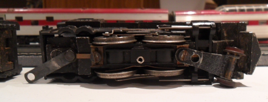 While my Greenberg's Guide to Lionel HO doesn't say so, I suspect the 0642 and later versions were an attempt to standardize so that this engine used the same wheels and pilot as the 4-6-2. In that sense it's a combination of Hobbyline and English tooling. Or maybe the tooling for the smaller wheels broke, they were only on the 0602 and the 0642 switchers; the 0602 0-6-0 was 1960 only, the 064 0-4-0T lasted longer but I suspect was made up of parts on hand by the end; I have about five of them. Either way it made for a goofy looking little engine.
