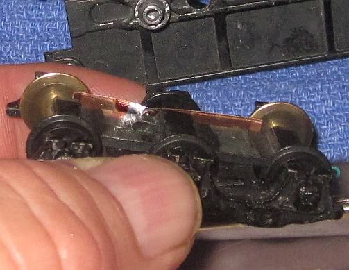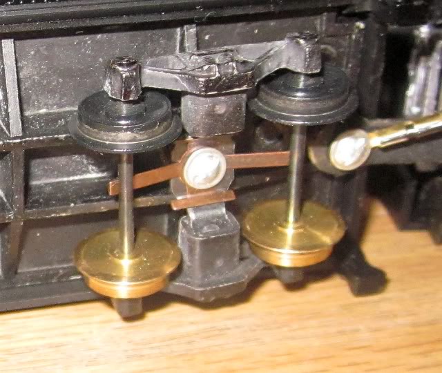 When you're looking at the rear of the tender, make sure the brass wheels are on the left. The combination of brass, steel and zinc makes for high resistance...those truck sideframes get real hot. You can bypass this with extra pickup made with a couple of extra wipers from an old TYCO searchlight car or similar...