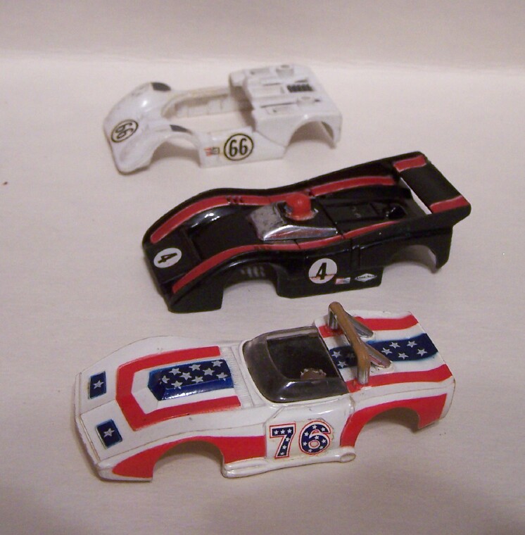 I was visiting my friend up near Pittsburgh this weekend near Acme, and on the way home Sunday stopped in Bedford PA at a great flea market, Hoke-E-Geez. Just got there before closing, but found a couple of great deals to bring home. Two Tyco Jeep slot trucks, $5 each, a bag of 5 slot bodies , 2 of them identical to the two Jeep Tycos, for $8. Not a bad pick! Also the Tyco Track Official slotless car came from my buddy's junk box of diecast. Jerry