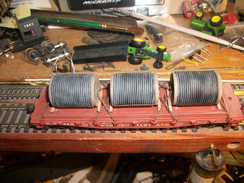The tracked tractors in John Deere, is going to be a whole other ball game with a mixed freight train. Sadly tho, I have multiples of these cars (I probably have 80 of these TYCO flat cars!) Which I plan to do different things with! WELL, being said that, the early railroad years of carrying steel coils weren't much different, on flat cars atleast, they then also used gondolas, covered or open top!