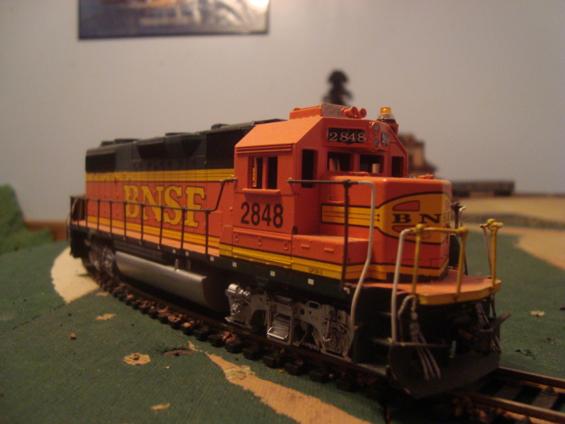 I have a custom painted BNSF Heritage II Athearn GP39-2. But you say Athearn never did a GP39. The custom builder took a GP38-2 and swapped over a GP40-2 dynamic hatch cover and its associated turbo charged exhaust. This would be an ex ATSF unit. Engine has working stratolite beacon, constant headlight in forward direction, this is a NON DCC lighting circuit and would have to be changed out if you went to dcc. Engine has air/mu hoses, cut levers, lift rings, seperate grabs, air condition on roof, brass horn and antenna platforms approiate to the late ATSF era when they still had the digital flashing beacons on the roof. This is a blue box unit with metal hand rails, front rails are custom due to anticlimber and snowplow. Engine runs super smooth and quiet. Would make an excellent yard engine as they still have the beacons due to remote control operation. I am looking for wild west stuff in trade, 4-6-0, D&RGW mantua/tyco passenger cars, old time freight cars, wild west building kits from tyco, kibri, bachmann ect. Would also be interested in a boxed Midnight Speical, Boxed Silver Streak with hand rails or Royal blue steamer. What do you have? Mike
